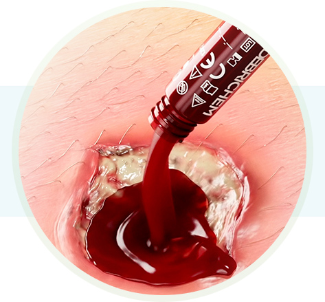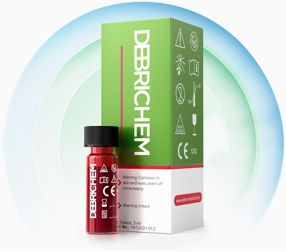 Due to its fast action and applicability outside the operating room, DEBRICHEM® can easily be integrated within standard wound care procedures, by all medical staff. It eliminates unhealthy and necrotic tissue without causing bleeding, which is one of the main downsides of surgical debridement.
