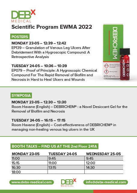 During the conference, we will present new clinical data and the impressive results of a cost-effectiveness analysis comparing the use of DEBRICHEM® against the standard of care in managing hard-to-heal venous leg ulcers in the UK.